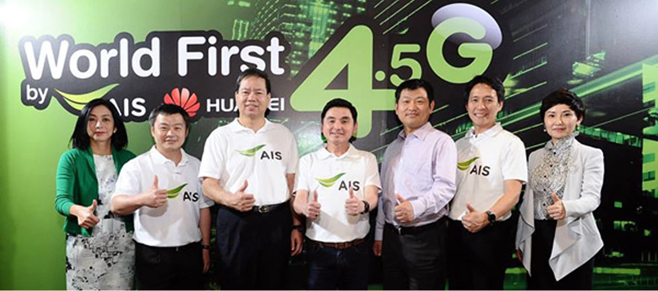 เอไอเอส เปิดตัว 4.5 G เชิงพาณิชย์ เป็นรายแรกของโลก โดยร่วมมือกับ“หัวเว่ย” พันธมิตรทางธุรกิจ คิดค้นและผสมผสานนวัตกรรมเครือข่ายอัจฉริยะเข้าด้วยกัน สามารถใช้งานที่ความเร็วสูงสุดถึง 550 เมกะบิตต่อวินาที และจะพัฒนาสู่ความเร็ว 1 กิกะบิตต่อวินาทีในอนาคต โดย 4.5G จะทำให้ผู้บริโภคชาวไทยสามารถใช้งานวิดีโอความละเอียดสูง และรองรับการใช้งานแอปพลิเคชันที่จะเกิดขึ้นในอนาคต เช่น Virtual Reality ได้
