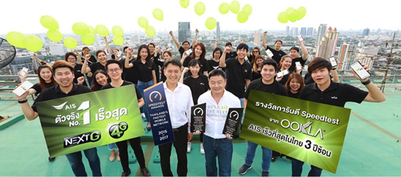 เอไอเอสคว้ารางวัลที่ 1 เครือข่ายอินเทอร์เน็ตที่เร็วที่สุดในประเทศไทยเป็นปีที่ 3 ติดต่อกัน (2558 - 2560) จาก OOKLA ผู้ให้บริการทดสอบความเร็วอินเทอร์เน็ตชั้นนำของโลก แสดงถึงศักยภาพของเครือข่าย AIS 4G ADVANCED ที่เร็วที่สุดและครอบคลุมมากที่สุดกว่า 98% ของพื้นที่ประชากร